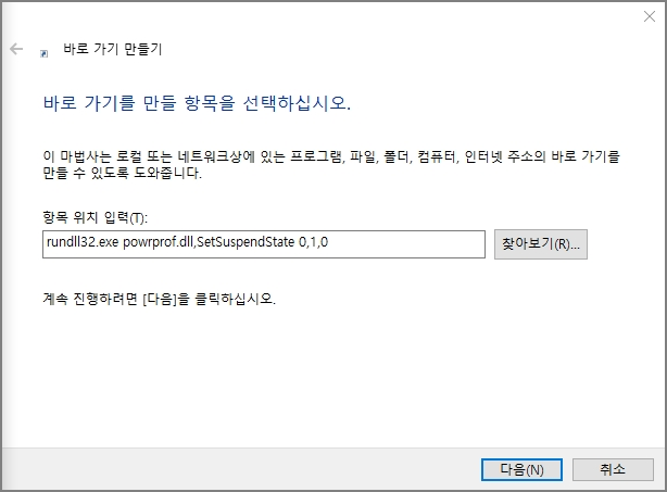 - '절전' 단축 아이콘을 만들 경우 입력할 내용